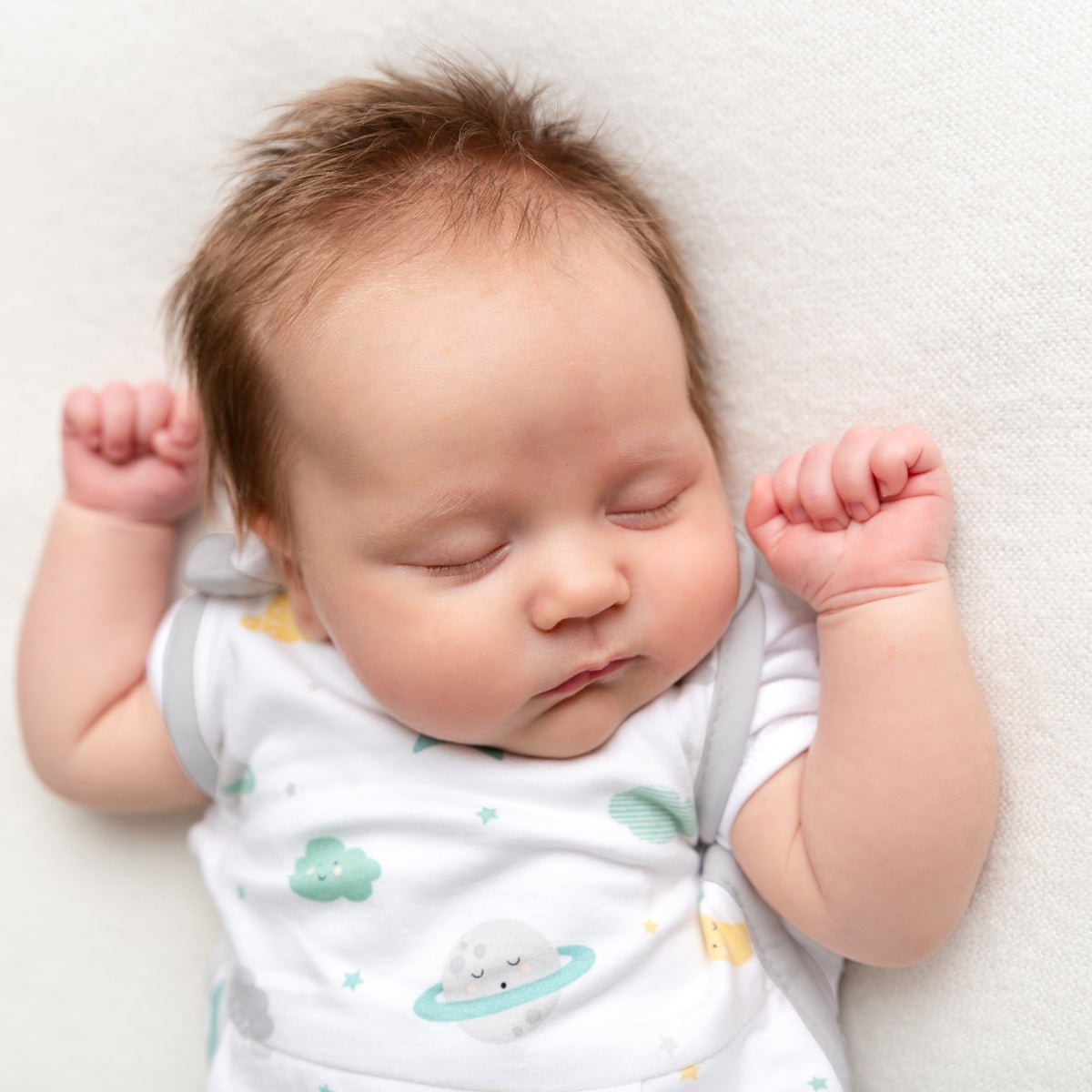 Leg dein Baby in den ersten 12 Monaten zum Schlafen immer auf den Rücken. Die Rückenlage ist die ideale Schlafposition, sie ist am besten für einen ruhigen, gesunden und sicheren Babyschlaf geeignet, da dein Kind hierbei am meisten Luft bekommt.